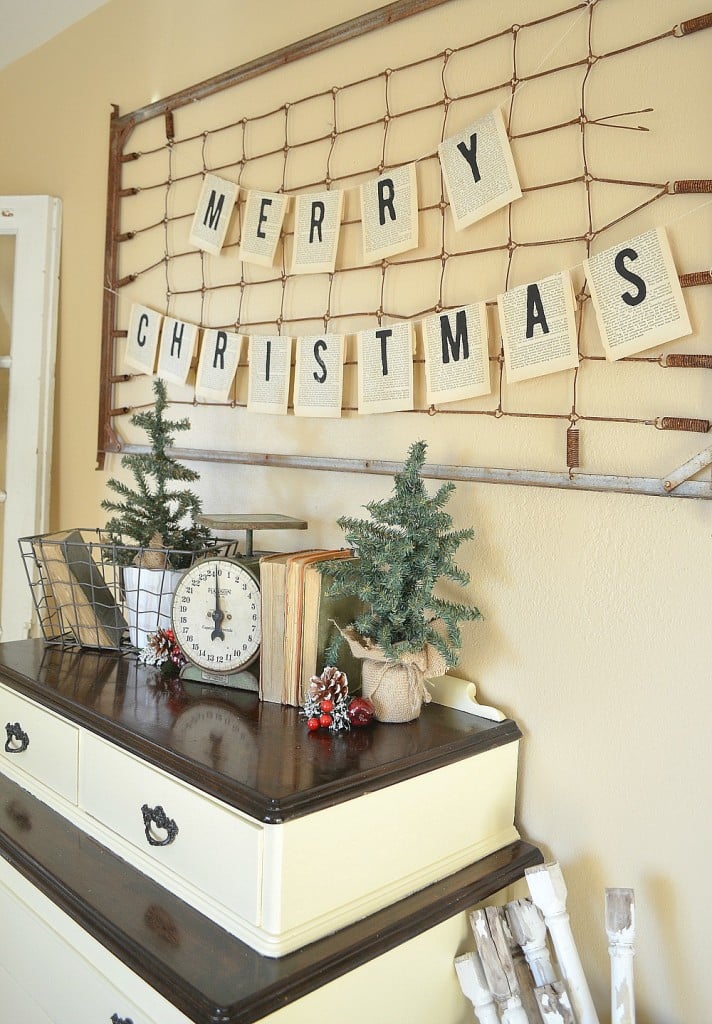 Vintage Apron Rack Old Door Turned Mirror DIY Beverage Station Tractor Valentine’s Day Box Vintage Book Page Christmas Banner