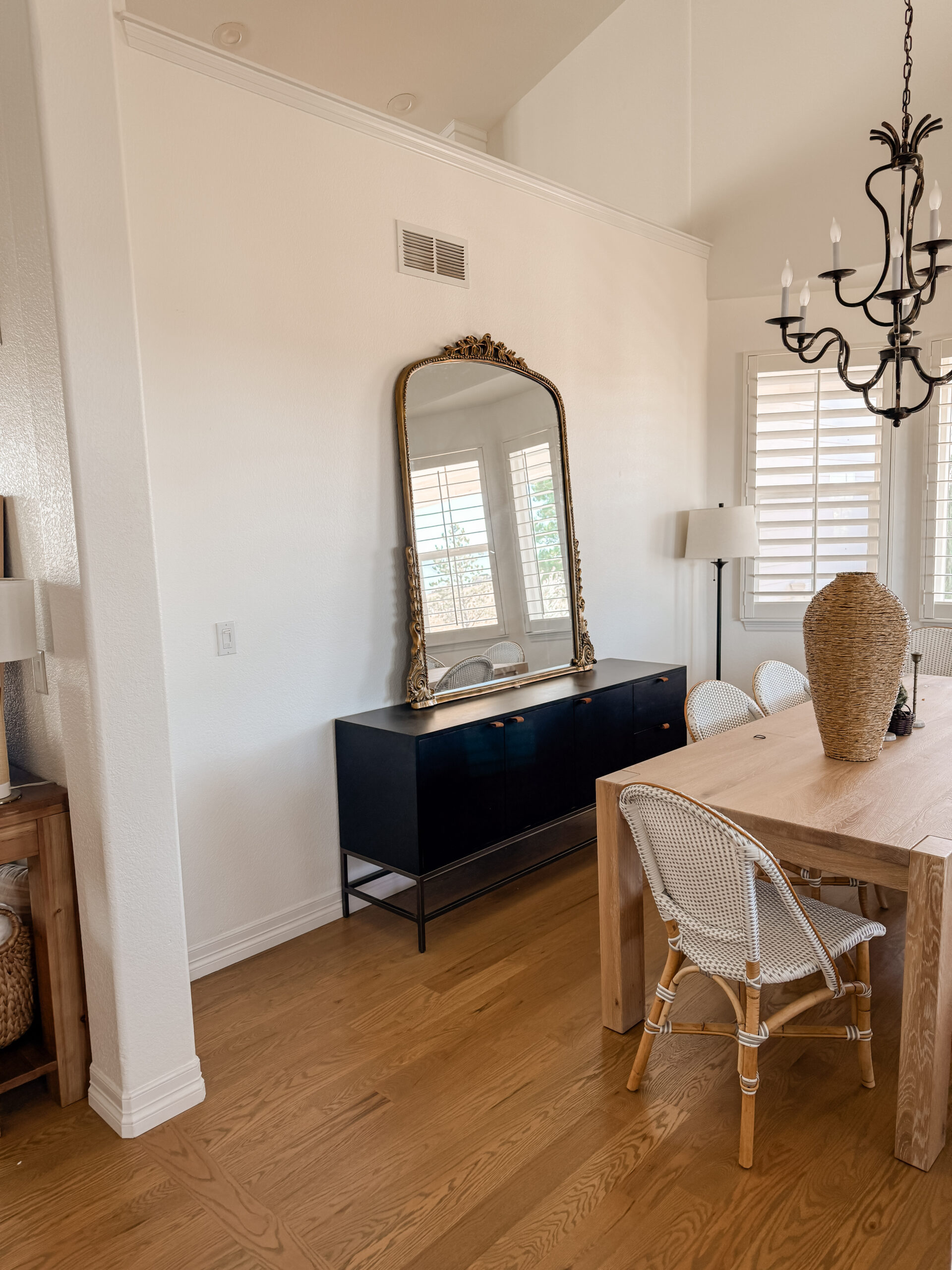 Overall this is a super simple change, but that wall and new chandelier really transformed this space. The chandelier is exactly what I wanted for this room–I found it on Wayfair and it’s a total Pottery Barn dupe. Highly recommend!! Also how cool is that horse photo?! Funny story: I saw that in a boutique almost 2 years ago and absolutely loved it. But I didn’t end up buying it and a few months later the store closed down. I randomly thought about that photo and always regretted not buying it. Anyway, I recently discovered the store didn’t close, they moved! I tracked them down and they still had the photo. I couldn’t believe it!